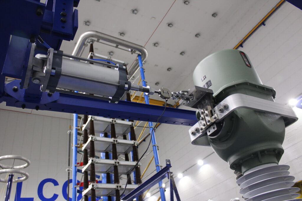 Mechanical tests on primary terminals of two instrument transformers manufactured by ARTECHE with rated static mechanical load of 5000 N have been performed in February 2024 at LCOE High Voltage Lab.