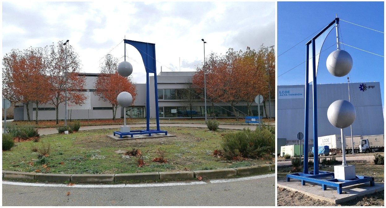 This unique piece, representing the history of high-voltage metrology, has been installed in a prominent and accessible location at the Tecnogetafe facilities: the interior roundabout at the entrance to the LCOE high-voltage laboratory.